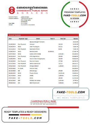 Cambodia Cambodian Public Bank statement easy to fill template in Excel and PDF format