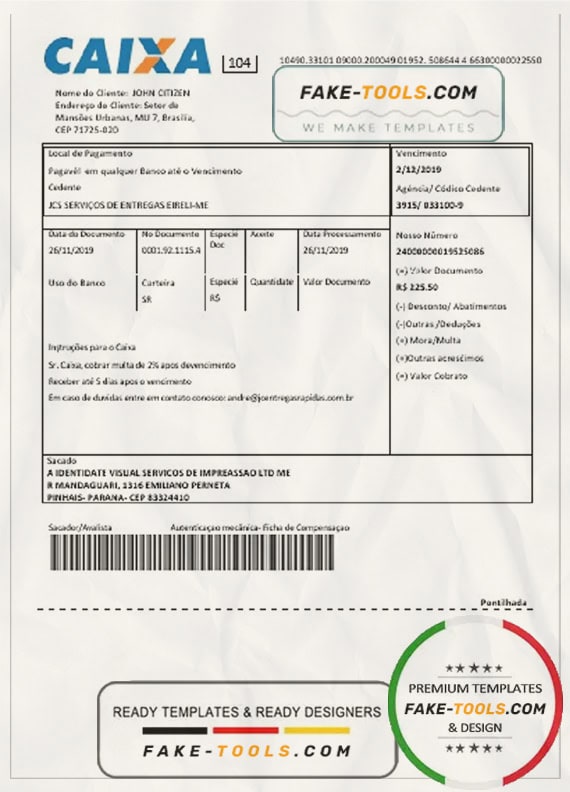 Brazil Caixa bank statement easy to fill template in Word and PDF format