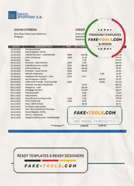 Paraguay Banco Amambay bank statement template in Word and PDF format