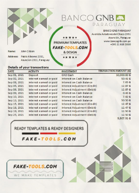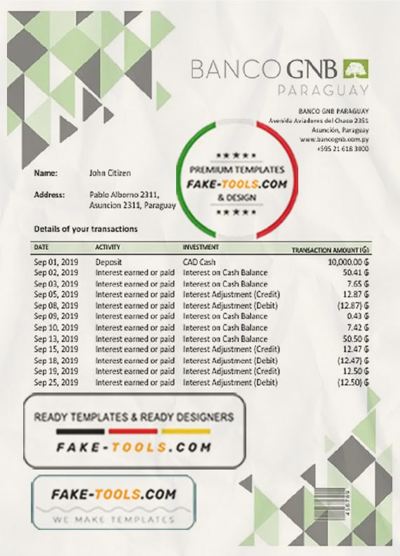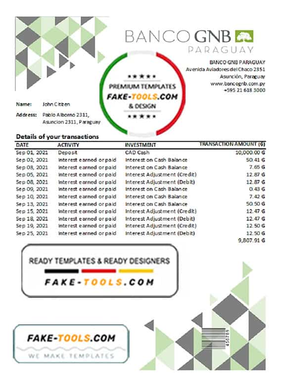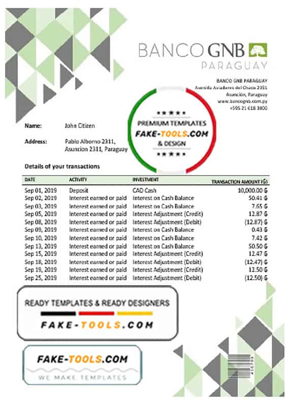 Paraguay Banco Continental S.A.E.C.A. bank statement template in Word and PDF format, good for address prove