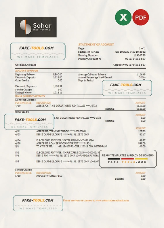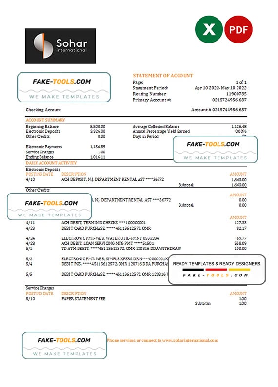 Oman Sohar International bank proof of address bank statement template in Word and PDF format