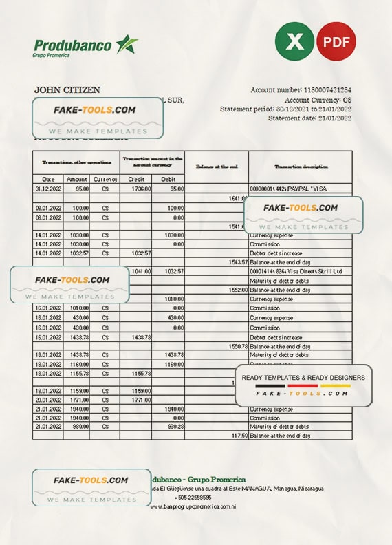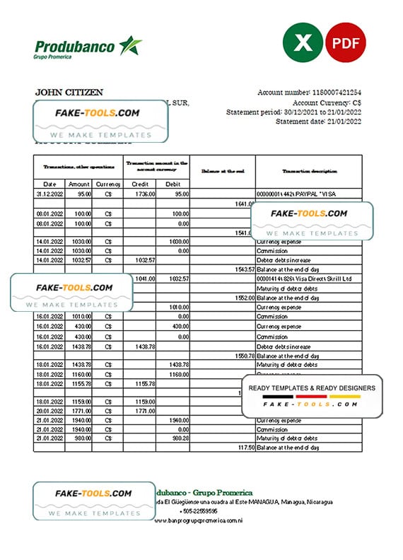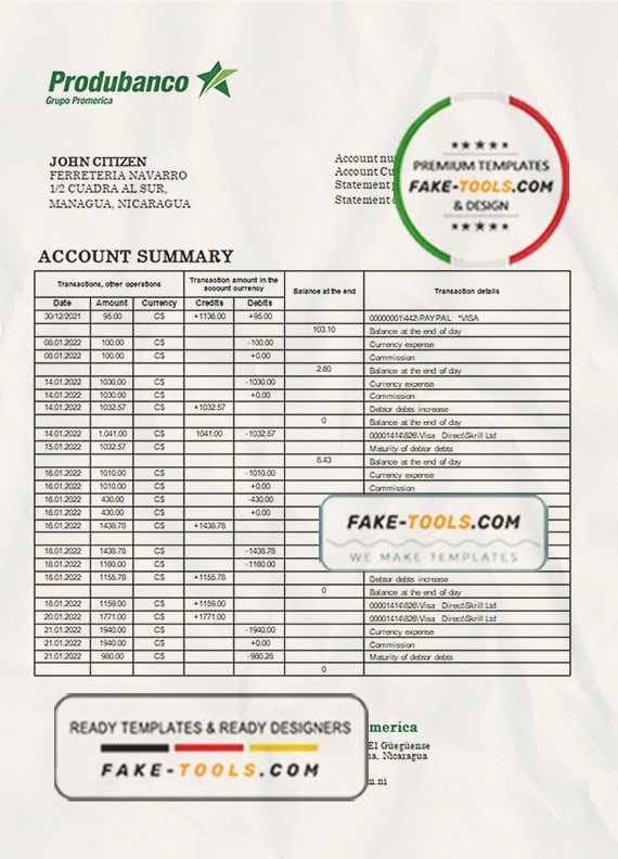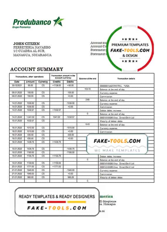 New Zealand Kiwibank bank statement template in Word and PDF format