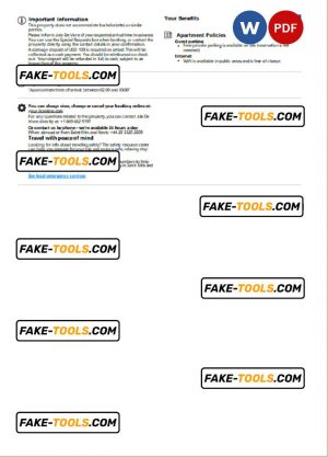 Rwanda hotel booking confirmation Word and PDF template, 2 pages