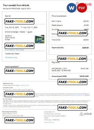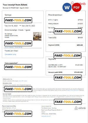 Kyrgyztsan Airbnb booking confirmation Word and PDF template