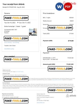 Panama Airbnb booking confirmation Word and PDF template
