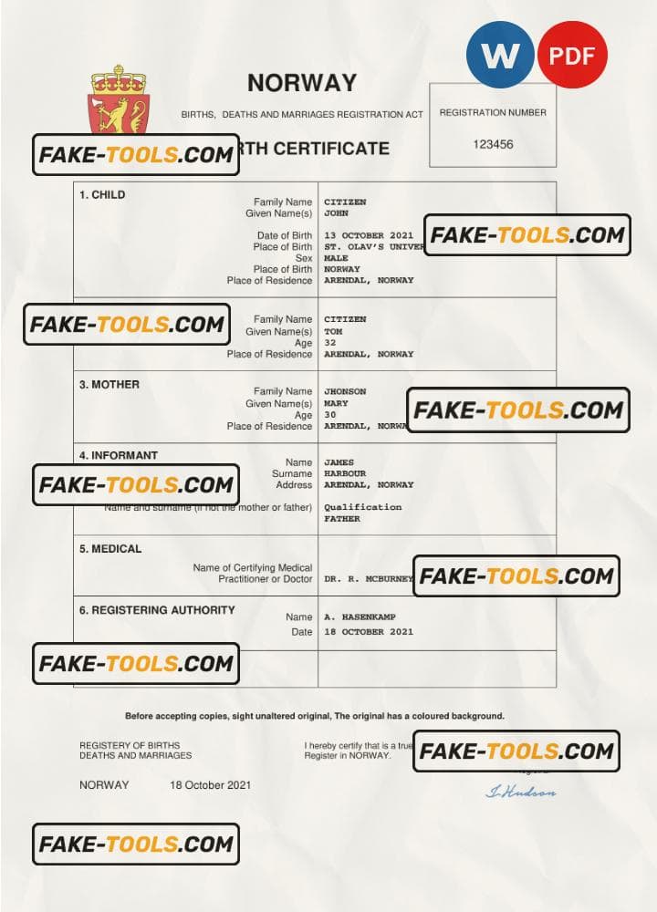 Nigeria vital record birth certificate Word and PDF template, completely editable