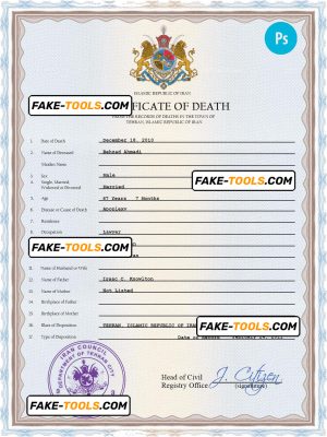 Iraq vital record death certificate PSD template