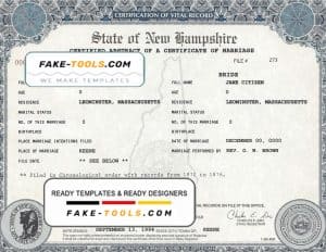 USA New Hampshire state marriage certificate template in PSD format, fully editable
