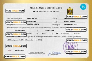 Egypt marriage certificate PSD template, fully editable