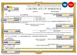 Bosnia & Herzegovina marriage certificate Word and PDF template, fully editable