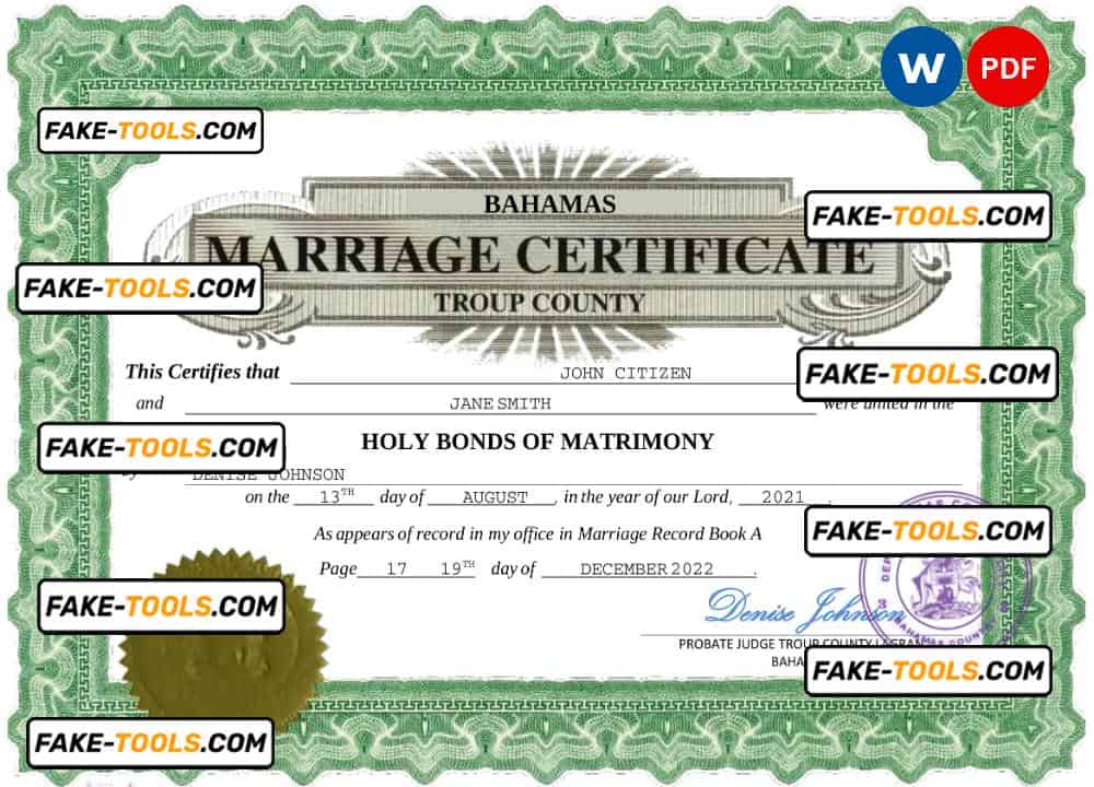 Azerbaijan marriage certificate Word and PDF template, fully editable