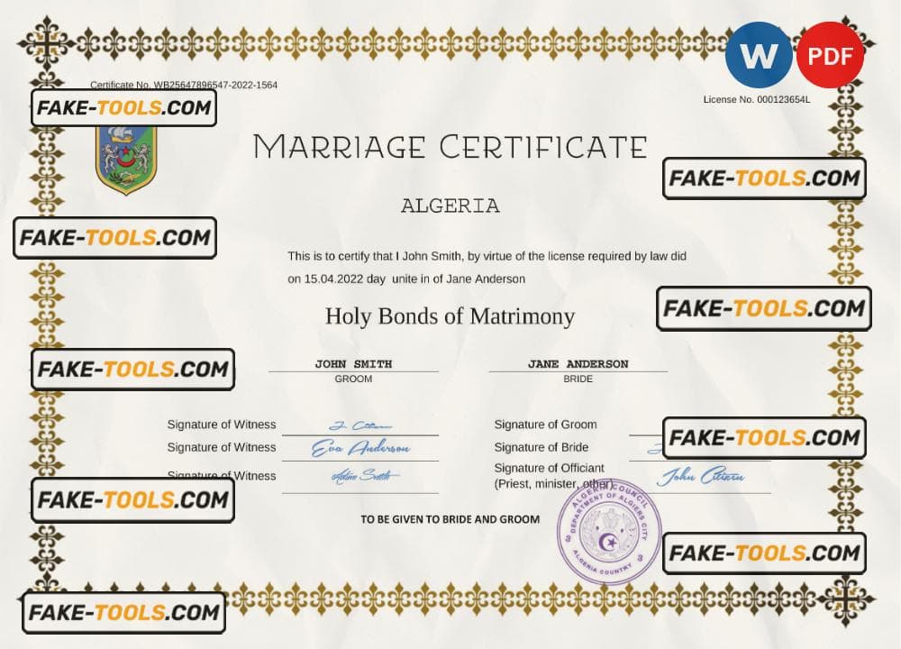Cote d’Ivoire marriage certificate Word and PDF template, fully editable
