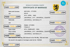 hypnotic universal marriage certificate Word and PDF template, fully editable