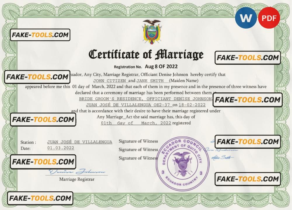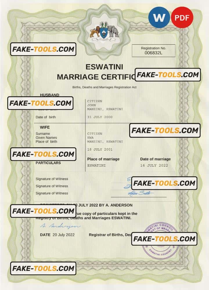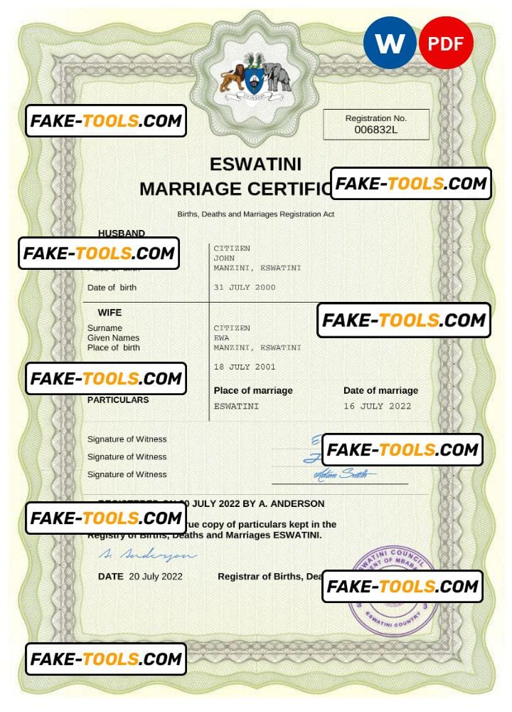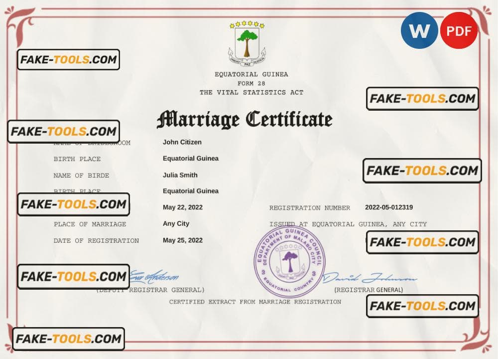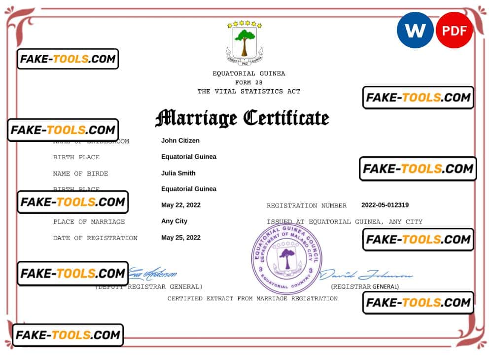 Equatorial Guinea marriage certificate Word and PDF template, fully editable