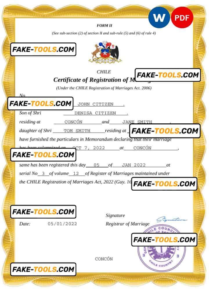 Czech Republic marriage certificate Word and PDF template, fully editable