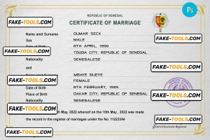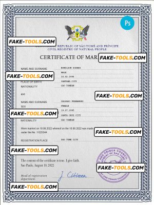 Sao Tome and Principe marriage certificate PSD template, completely editable