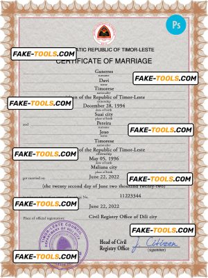 Trinidad and Tobago marriage certificate PSD template, fully editable