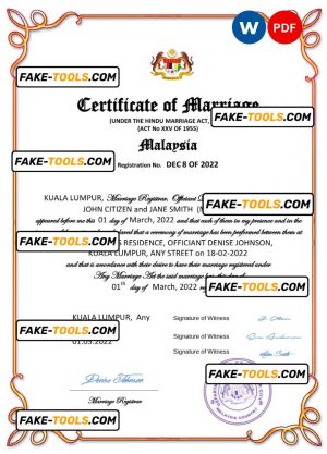 Luxembourg marriage certificate Word and PDF template, completely editable