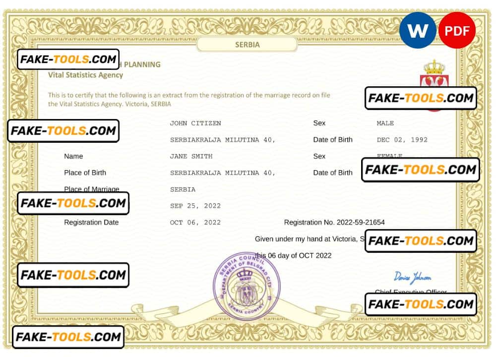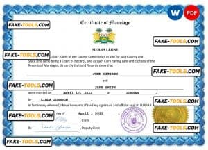 Sierra Leone marriage certificate Word and PDF template, completely editable
