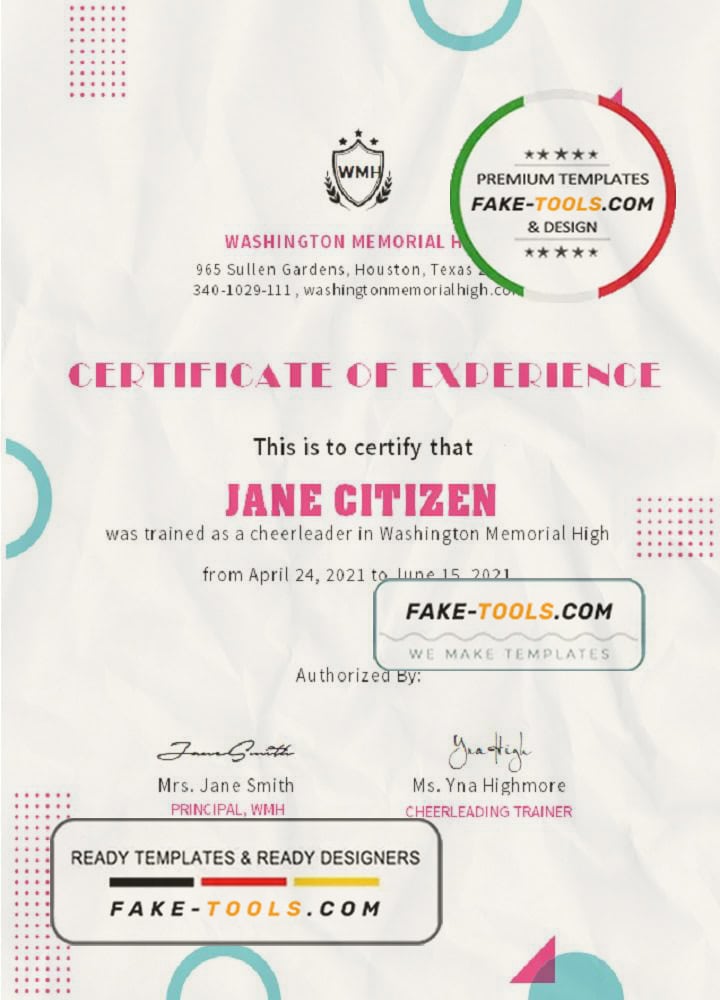 USA Car Workshop Experience Certificate template in Word and PDF format