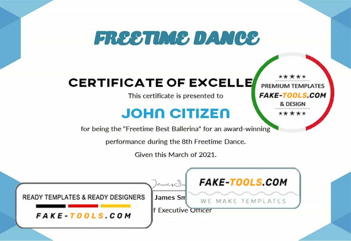 USA Academic Certificate template in Word and PDF format