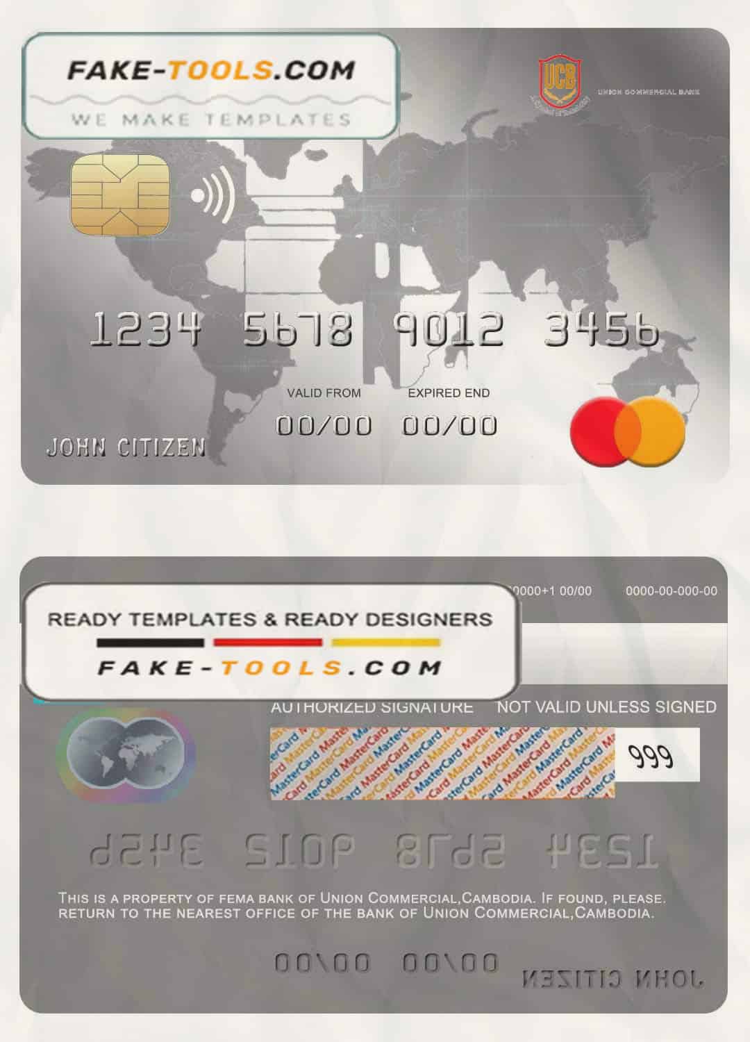 Cambodia Union Commercial bank mastercard credit card template in PSD format, fully editable