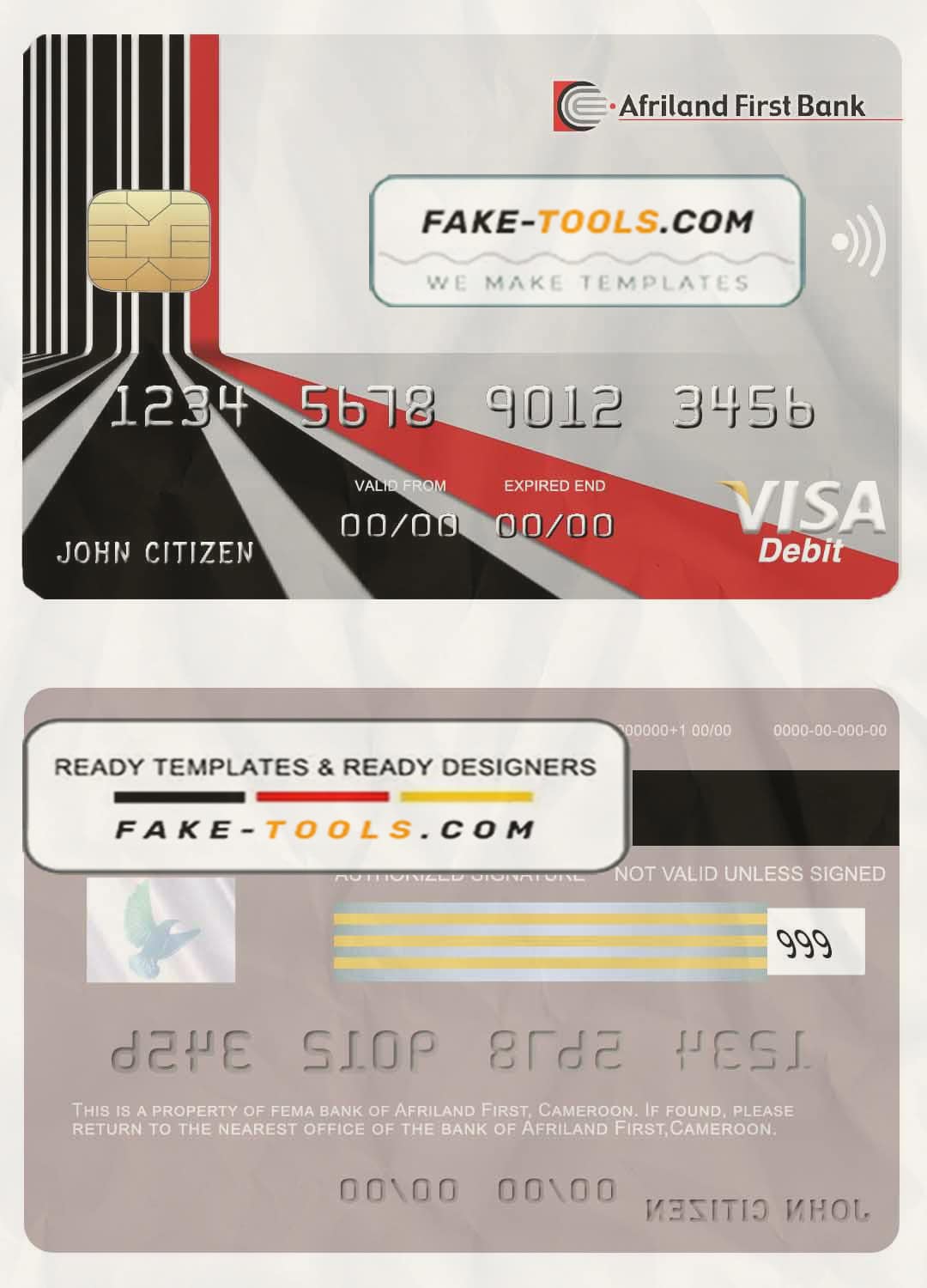 Cameroon Afriland First bank visa card credit card template in PSD format, fully editable