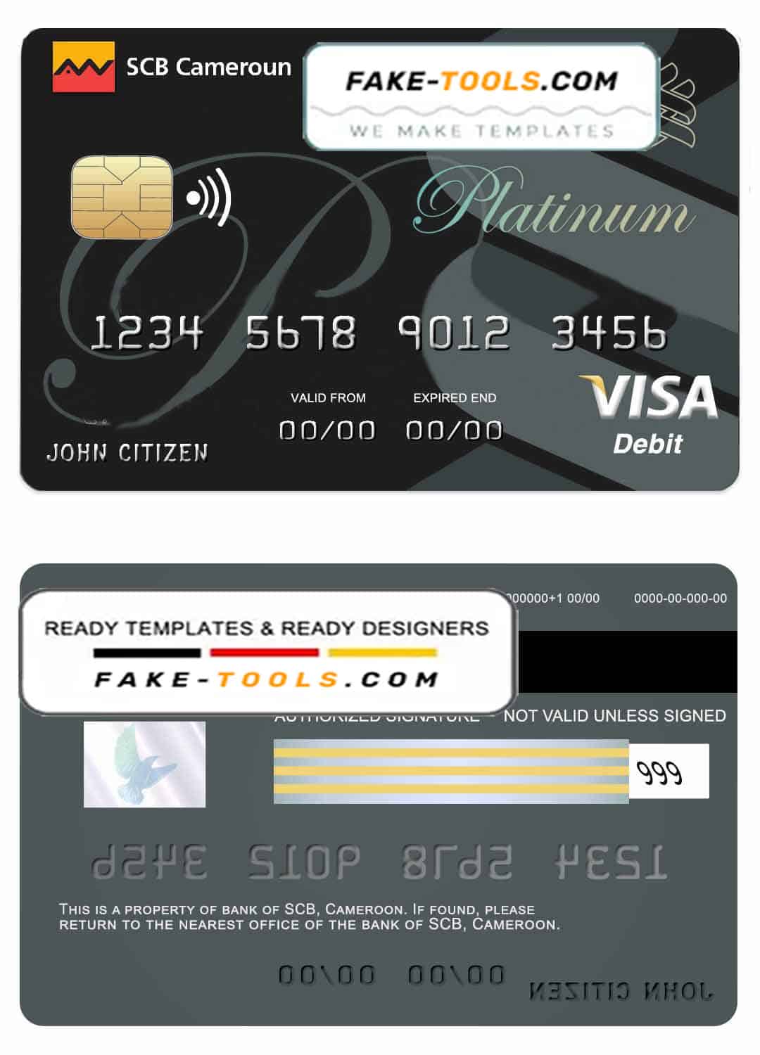 Cameroon SCB bank visa credit card template in PSD format, fully editable