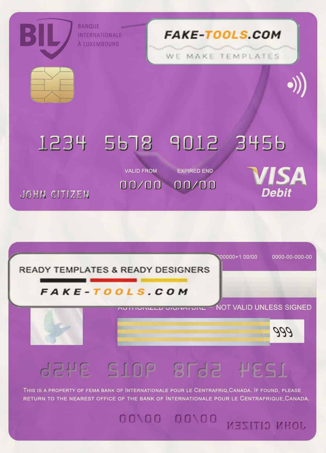 Canada Internationale pour le Centrafrique bank visa card template in PSD format, fully editable