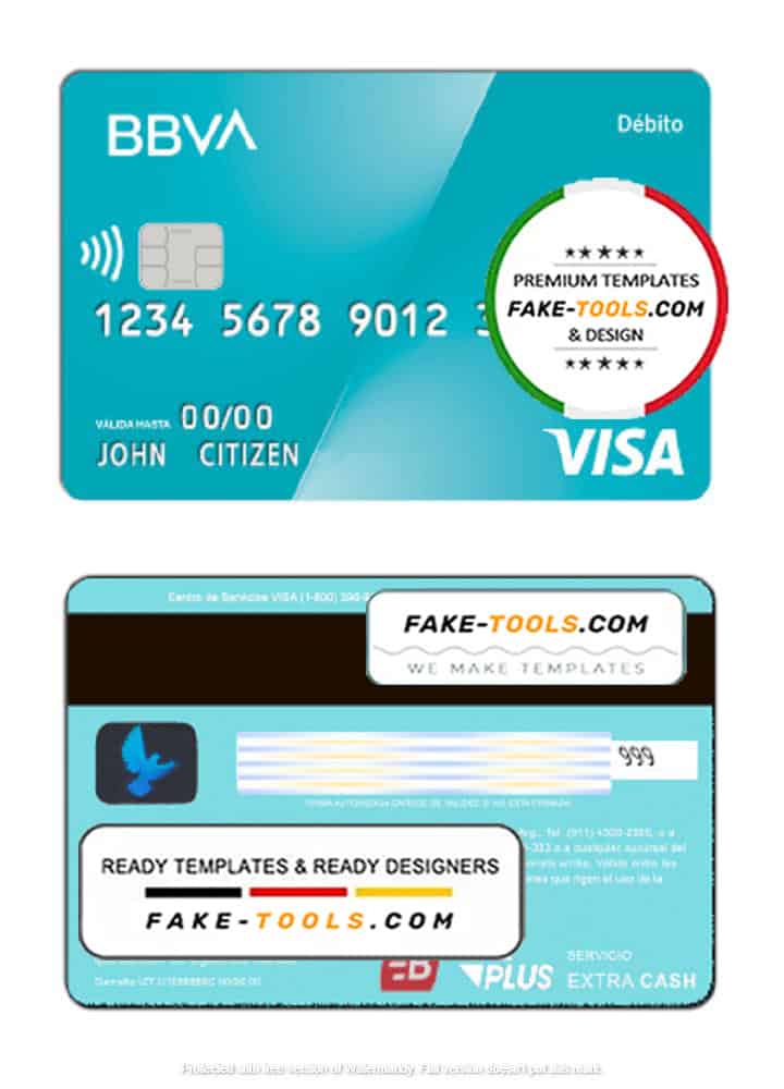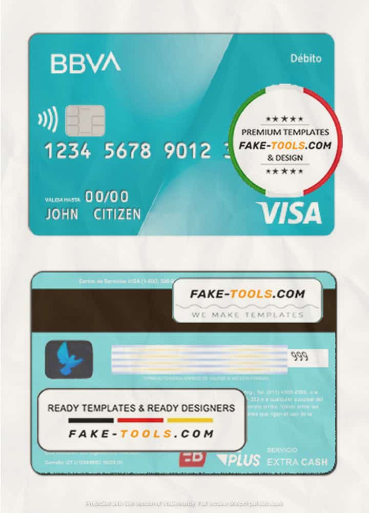 Argentina BBVA bank visa debit card template in PSD format, fully editable, with all fonts
