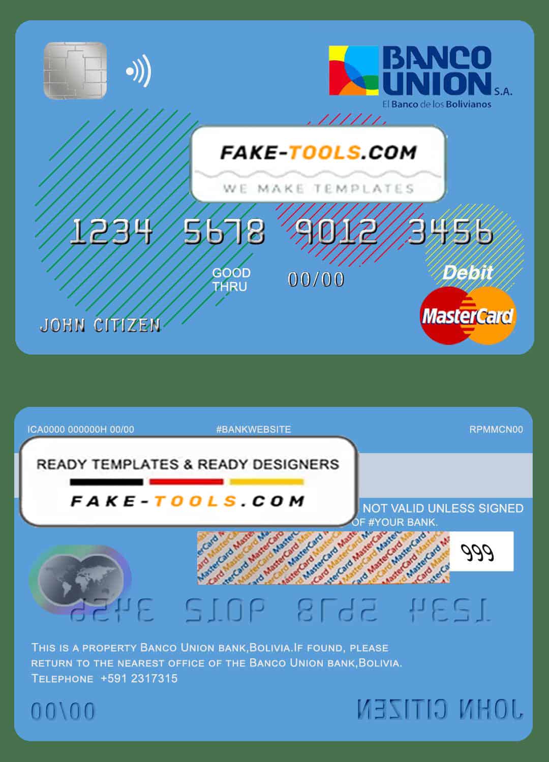 Bolivia Banco Union bank mastercard debit card template in PSD format, fully editable