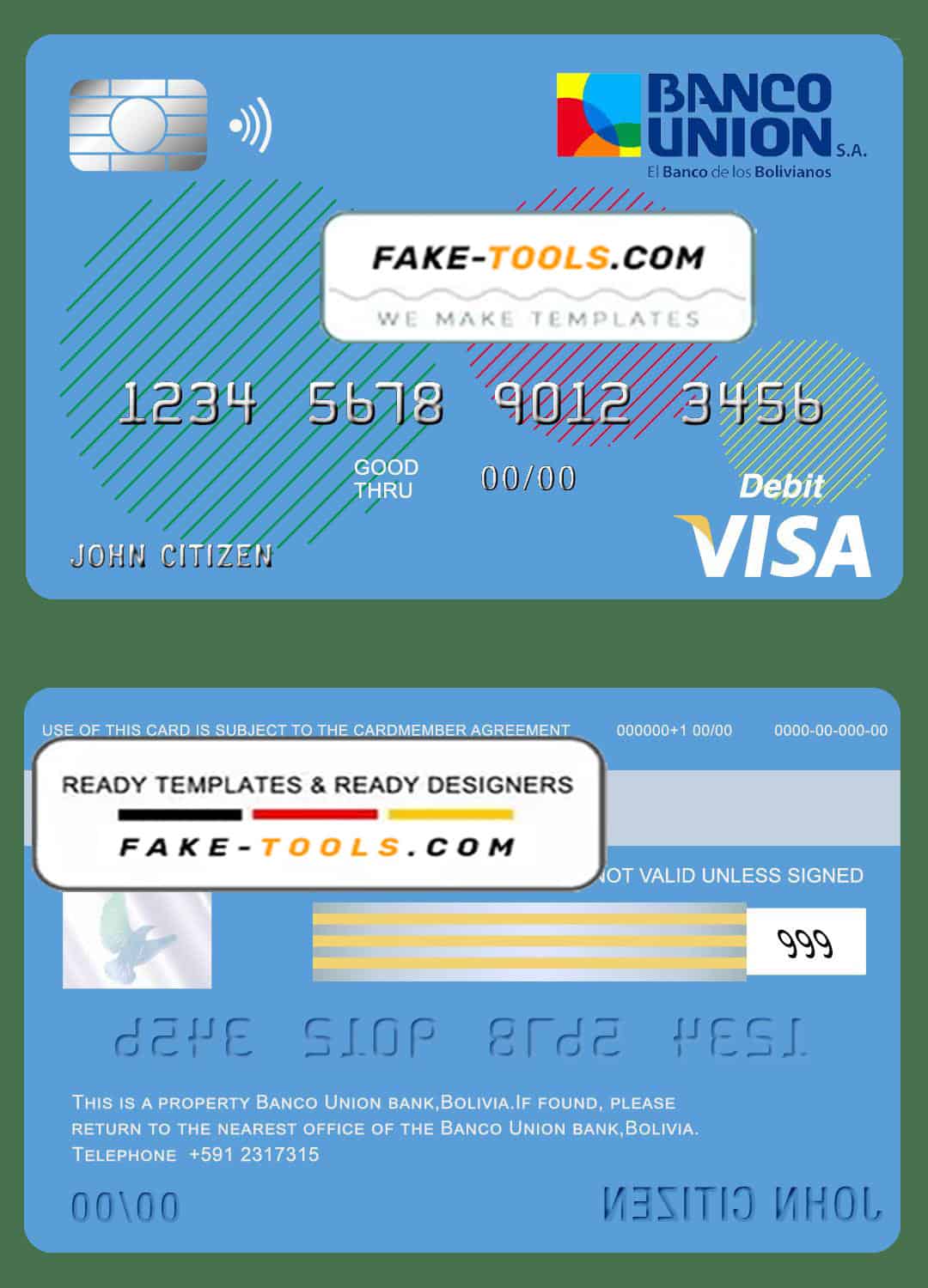 Bolivia Banco Union bank visa card debit card template in PSD format, fully editable
