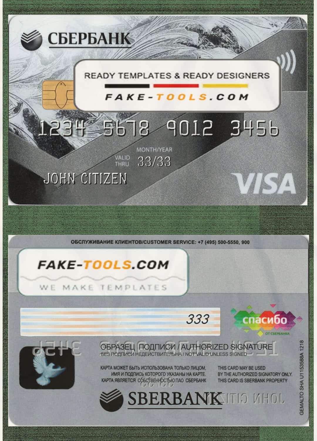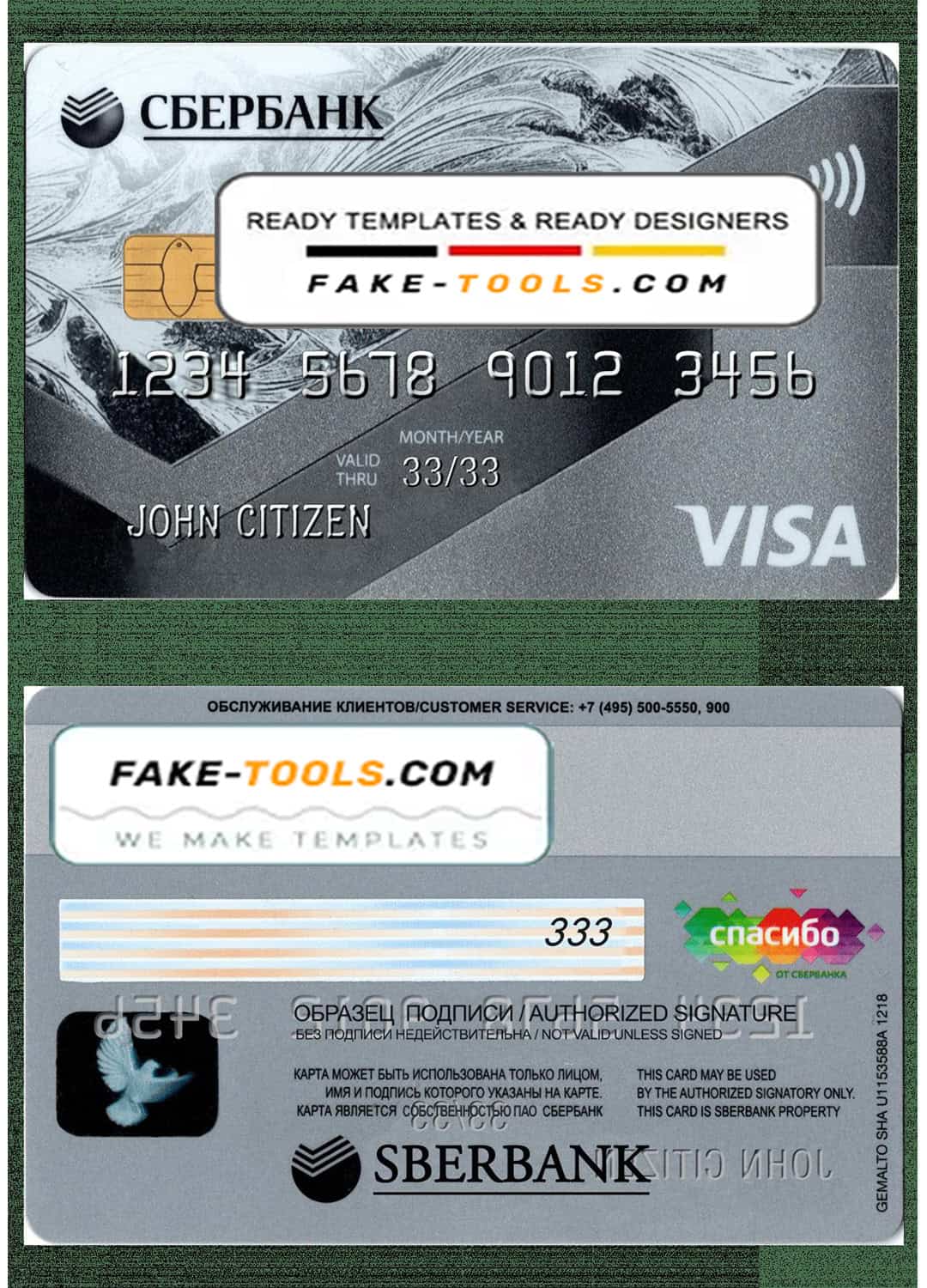 Russia Sberbank visa credit card template in PSD format, fully editable 1