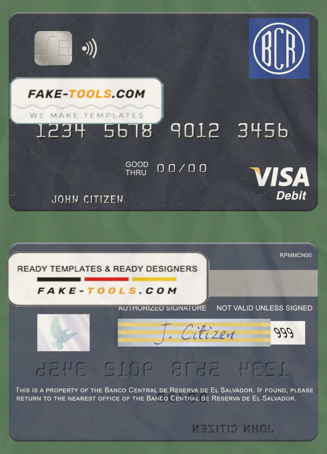 El Salvador Banco Central de Reserva de El Salvador visa debit card template in PSD format