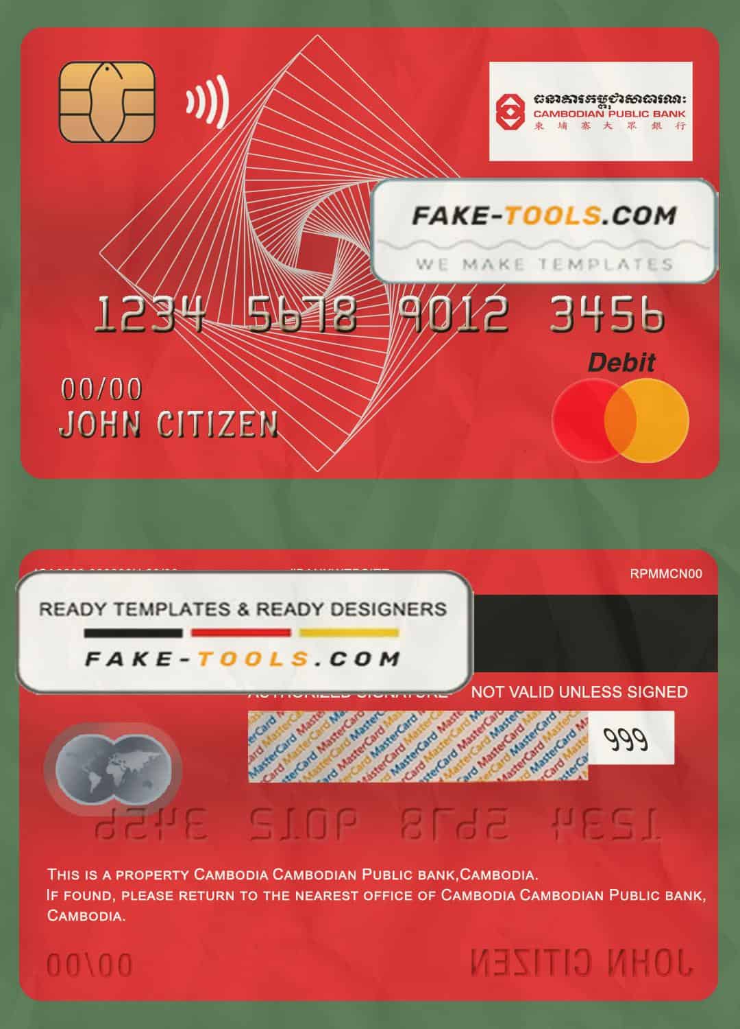 Cambodia Cambodian Public bank mastercard debit card template in PSD format, fully editable