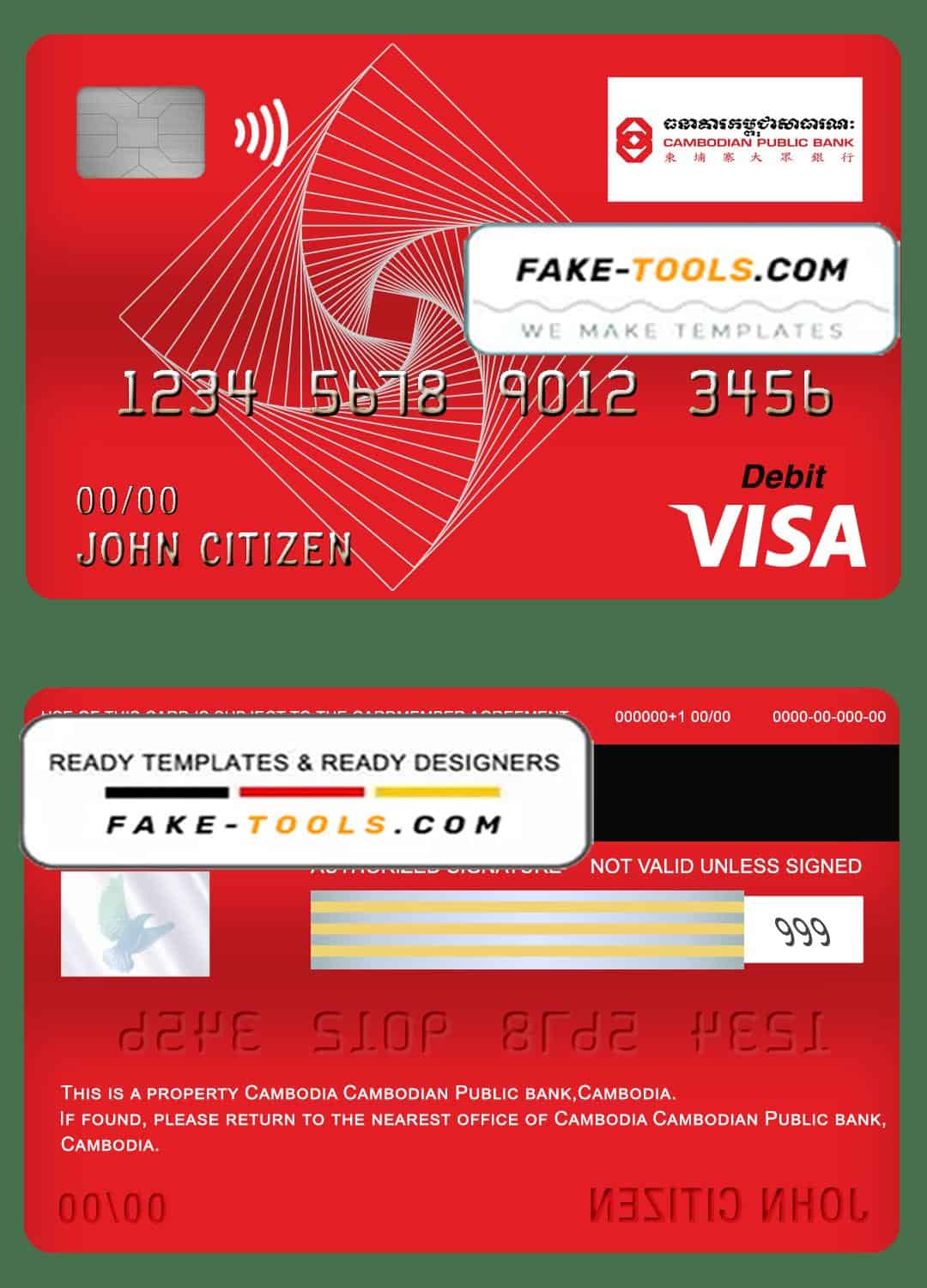 Cambodia Cambodian Public bank visa card debit card template in PSD format, fully editable