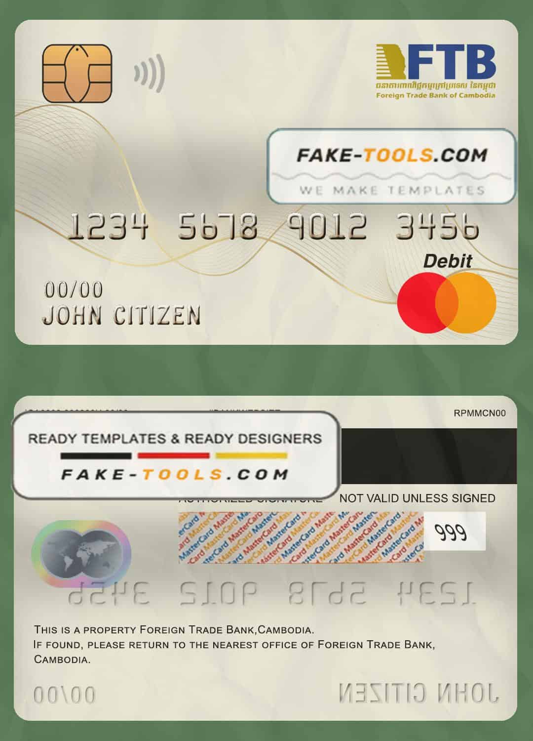 Cambodia Foreign Trade Bank of Cambodia bank mastercard debit card template in PSD format, fully editable