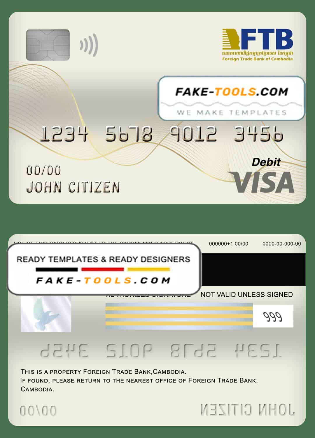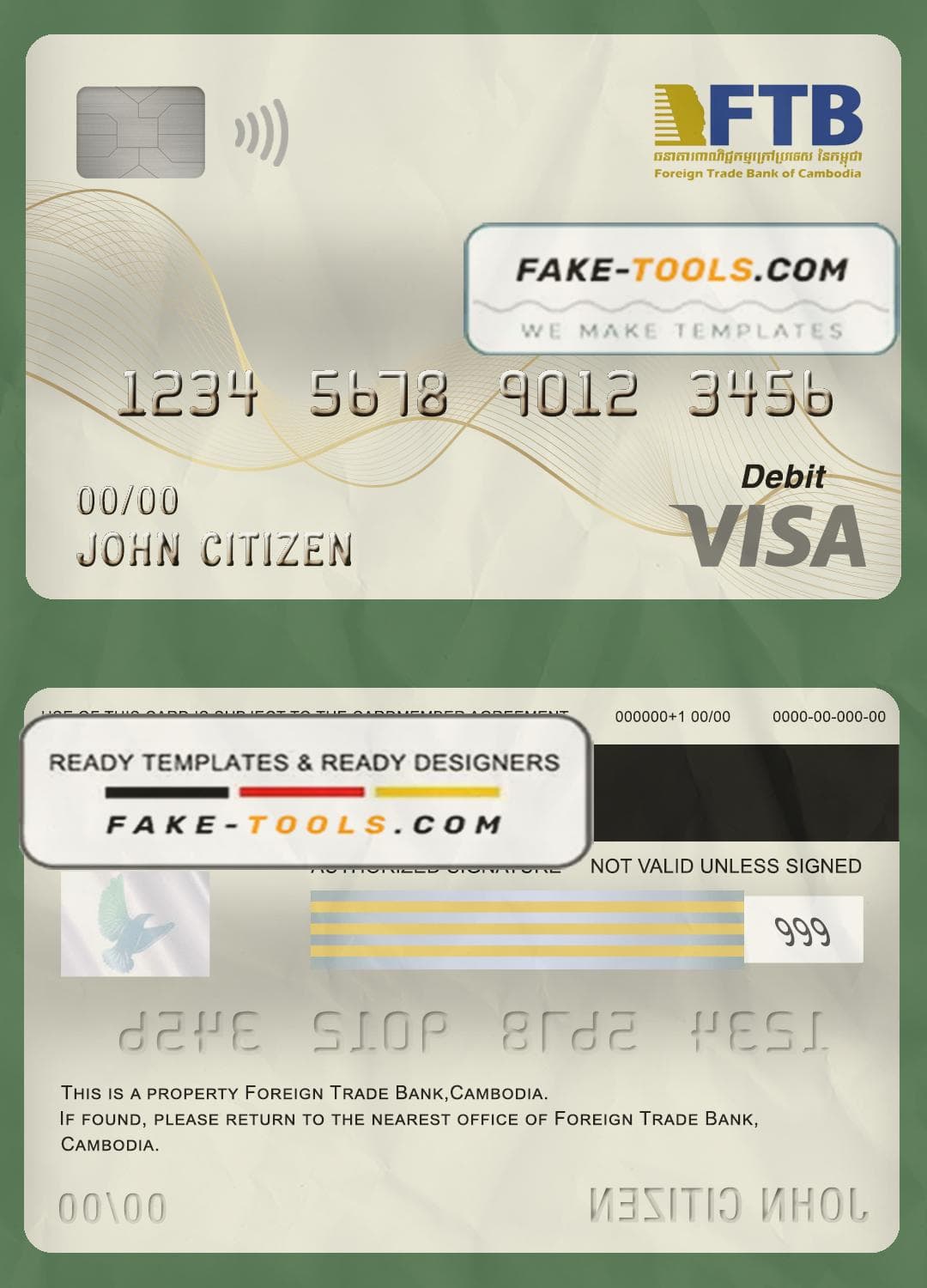 Cambodia Foreign Trade Bank of Cambodia bank visa card debit card template in PSD format, fully editable