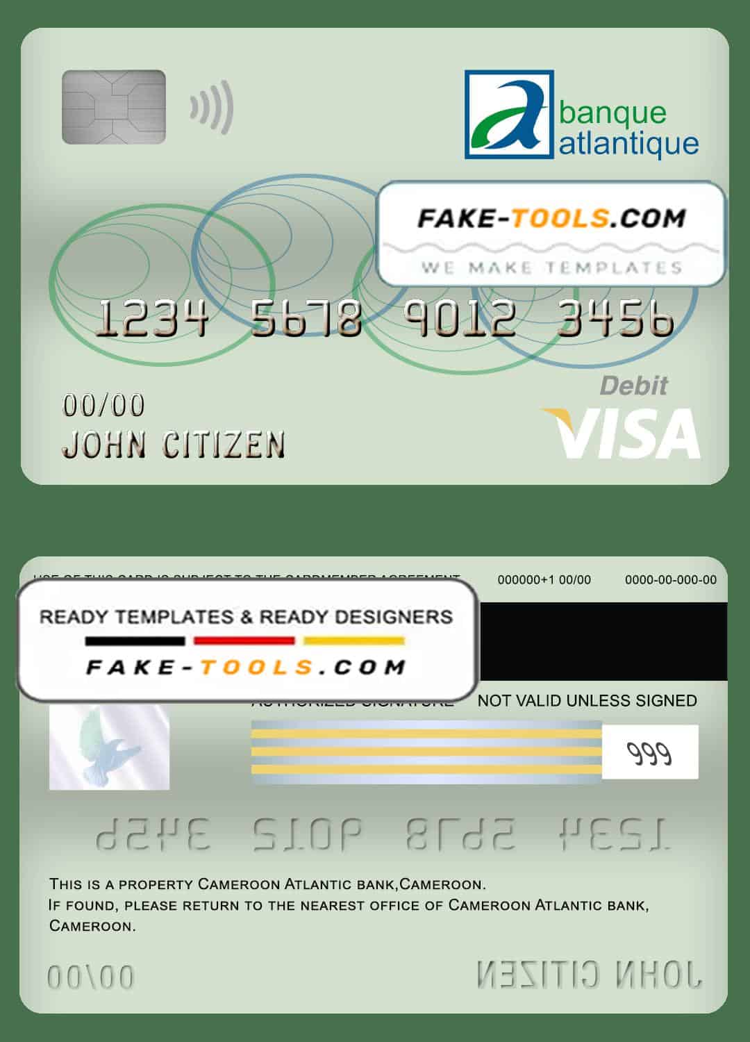 Cameroon Atlantic bank visa card debit card template in PSD format, fully editable