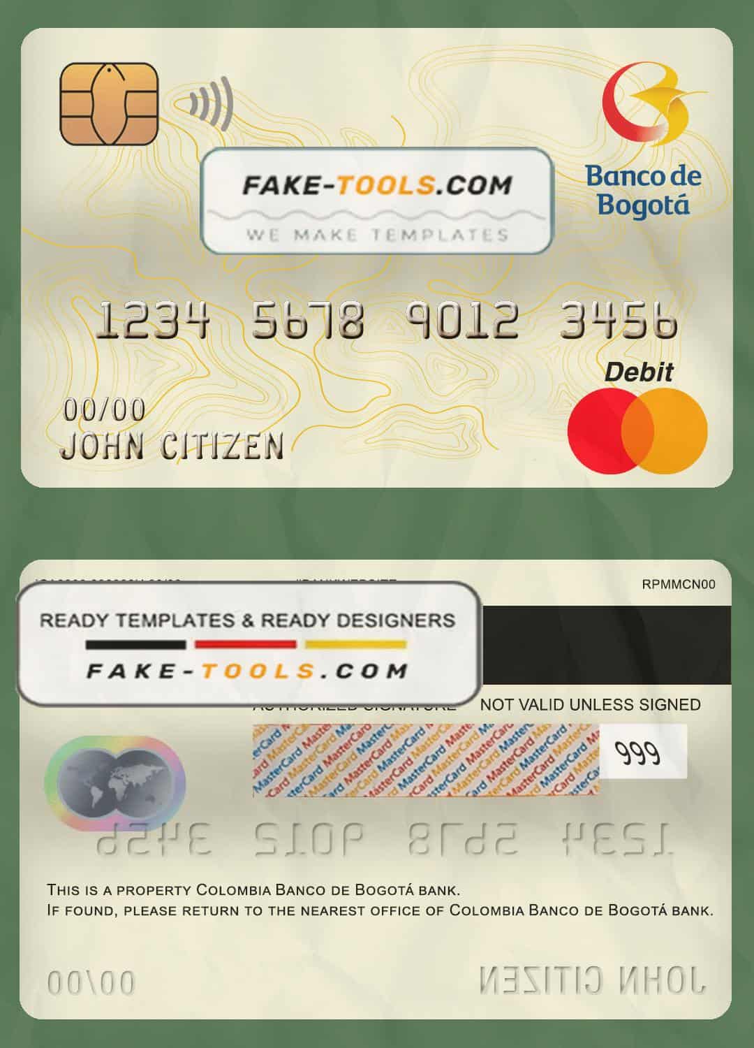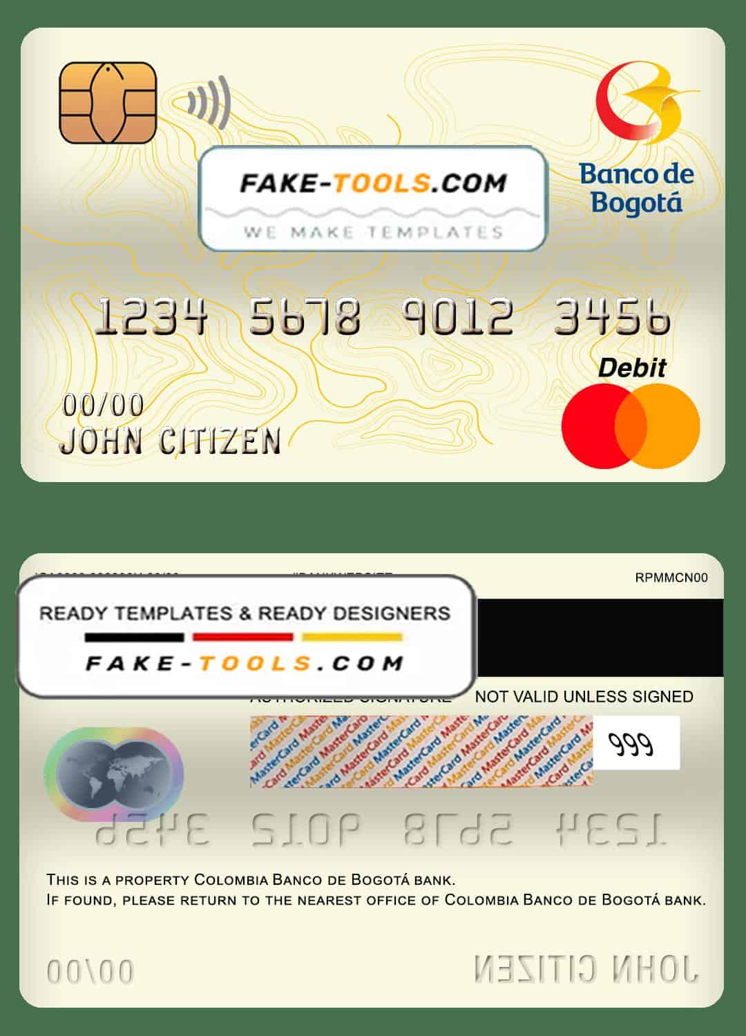 Colombia Banco de Bogotá bank mastercard debit card template in PSD format, fully editable