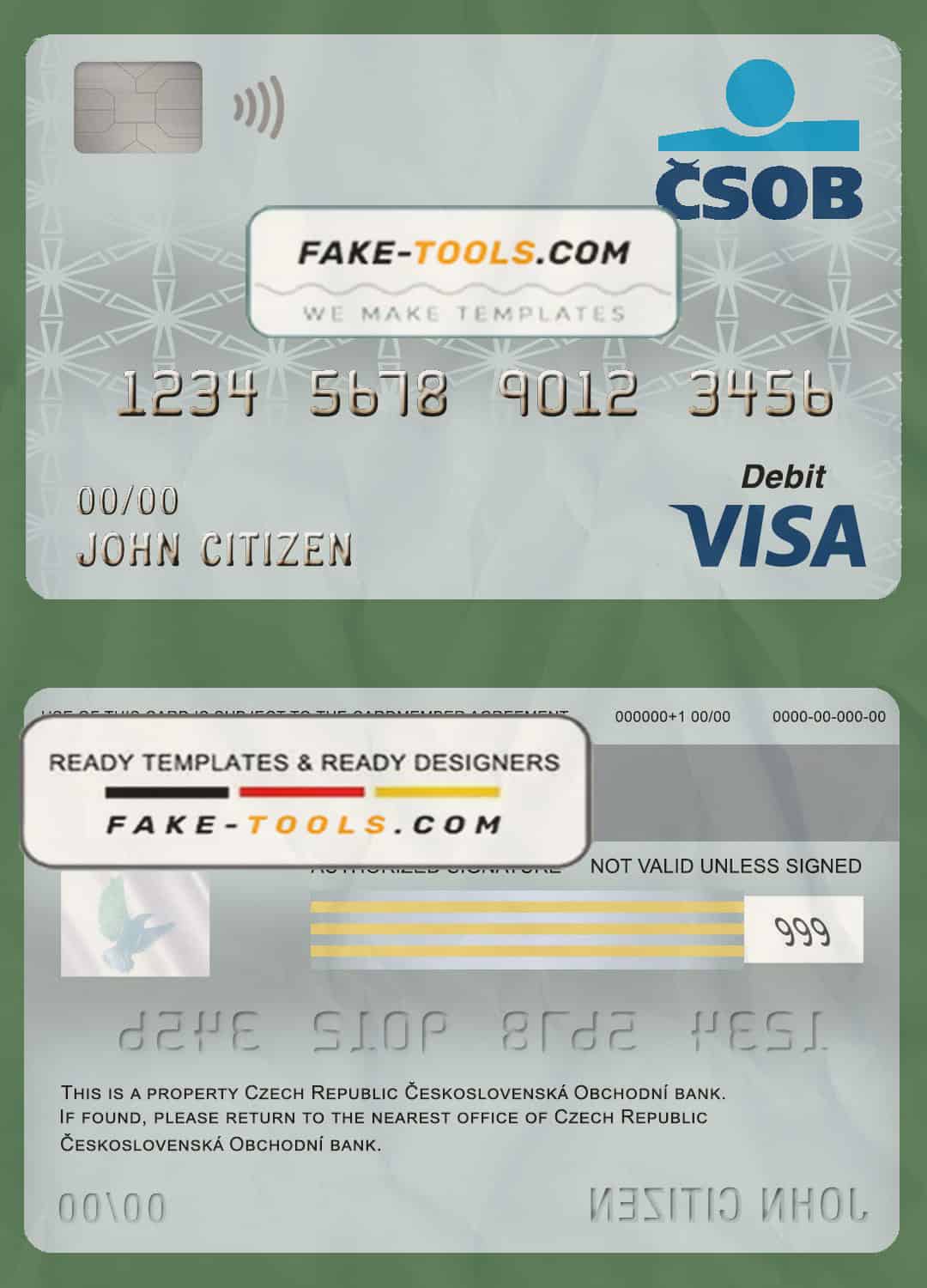 Czech Republic Československá Obchodní bank visa card debit card template in PSD format, fully editable