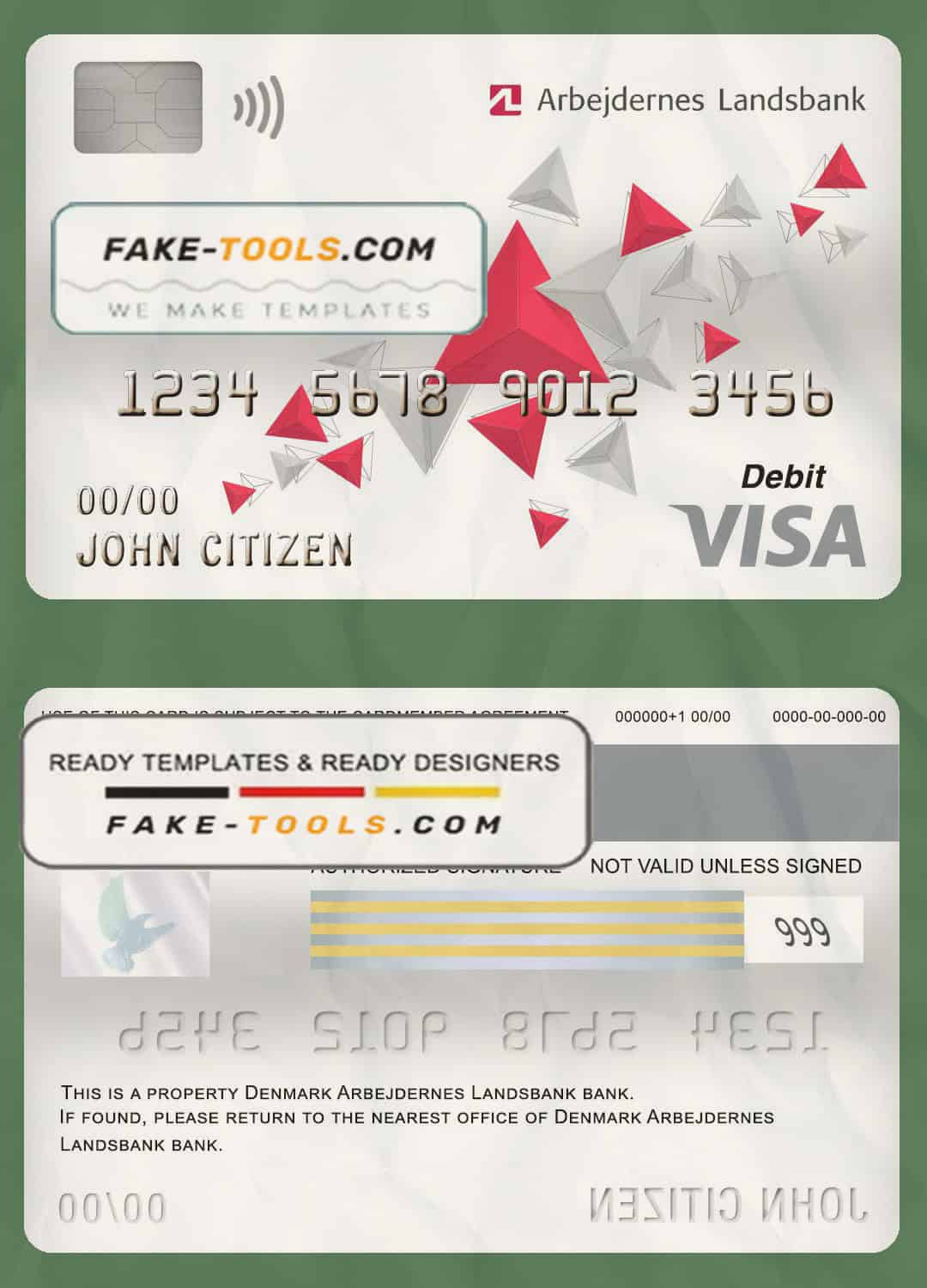 Denmark Arbejdernes Landsbank visa card debit card template in PSD format, fully editable
