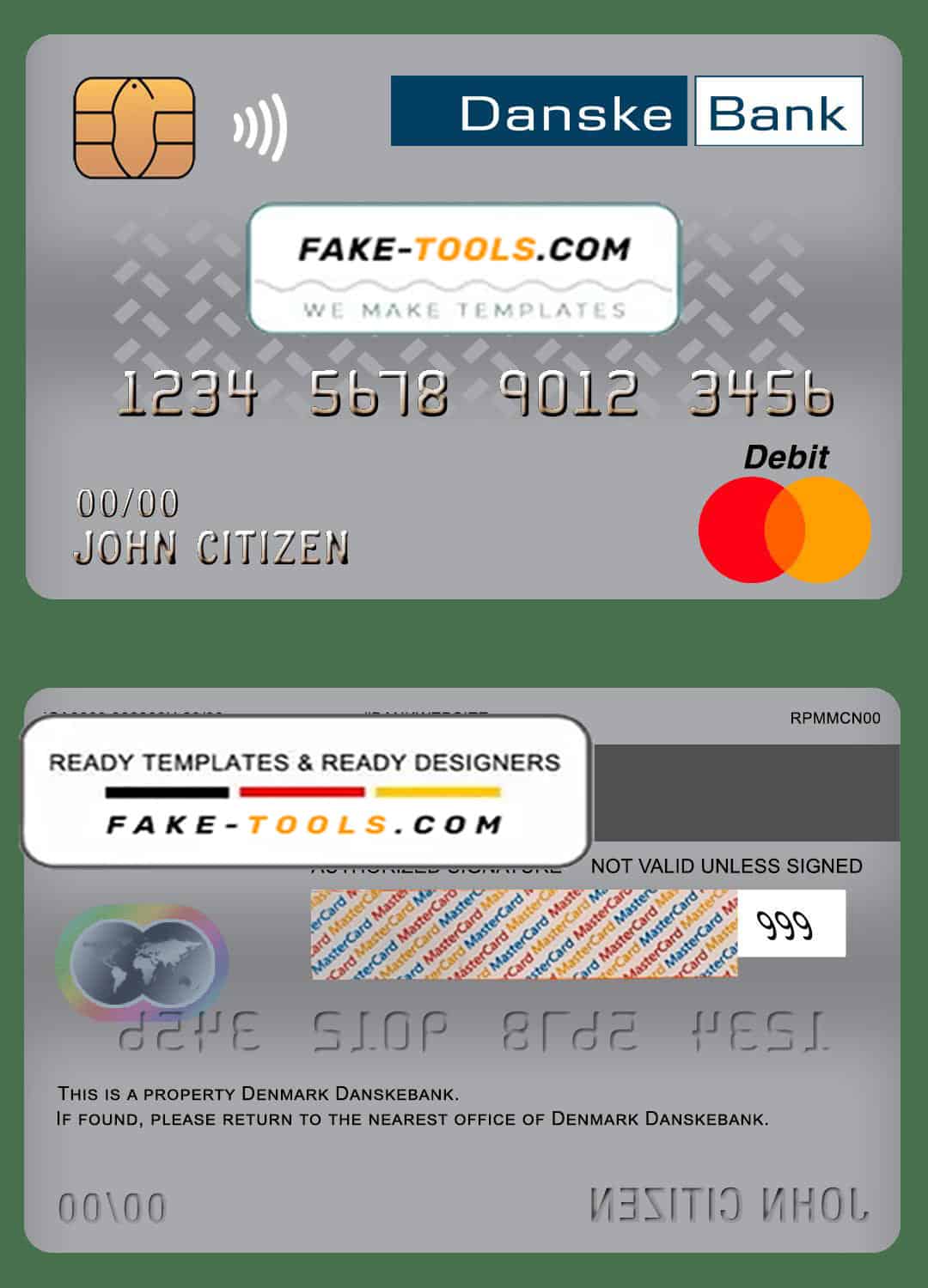 Denmark Danskebank bank mastercard debit card template in PSD format, fully editable