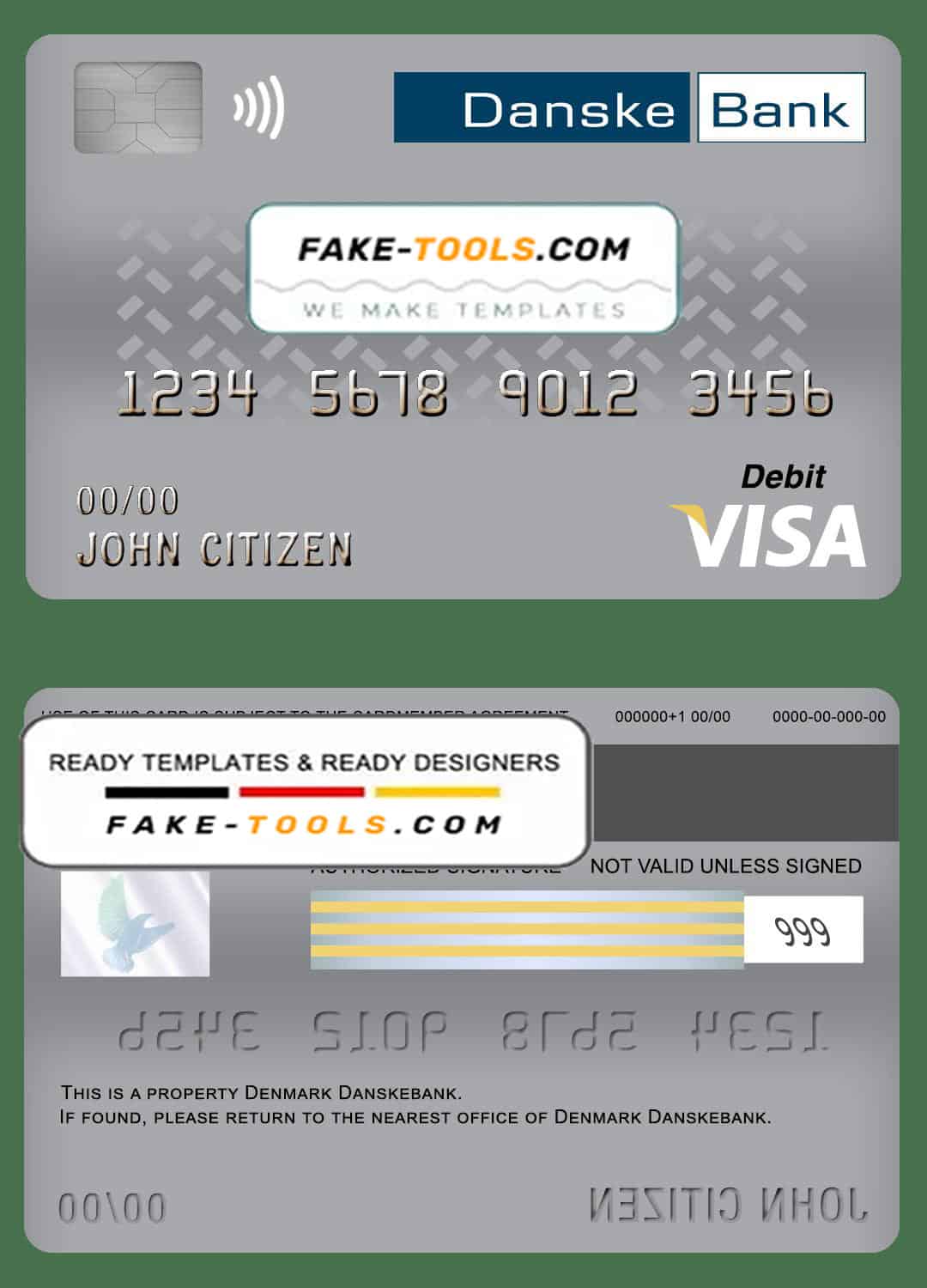 Denmark Danskebank bank visa card debit card template in PSD format, fully editable