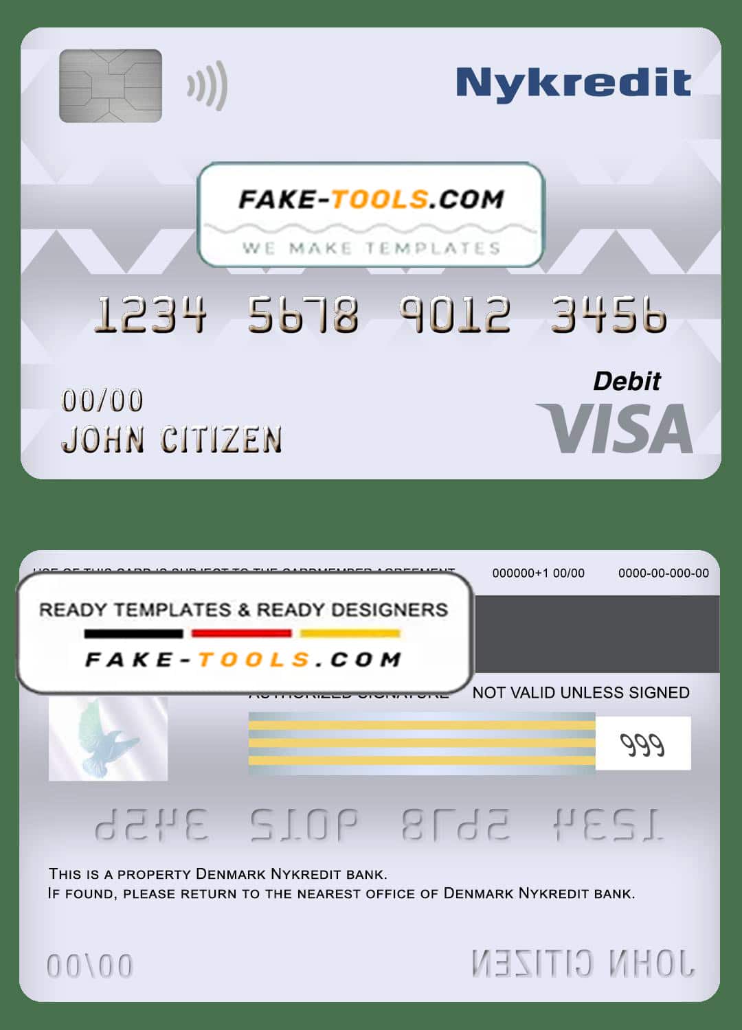 Denmark Nykredit bank visa card debit card template in PSD format, fully editable