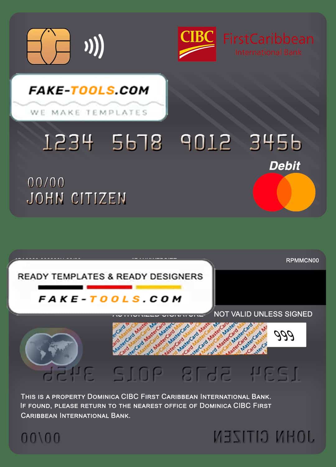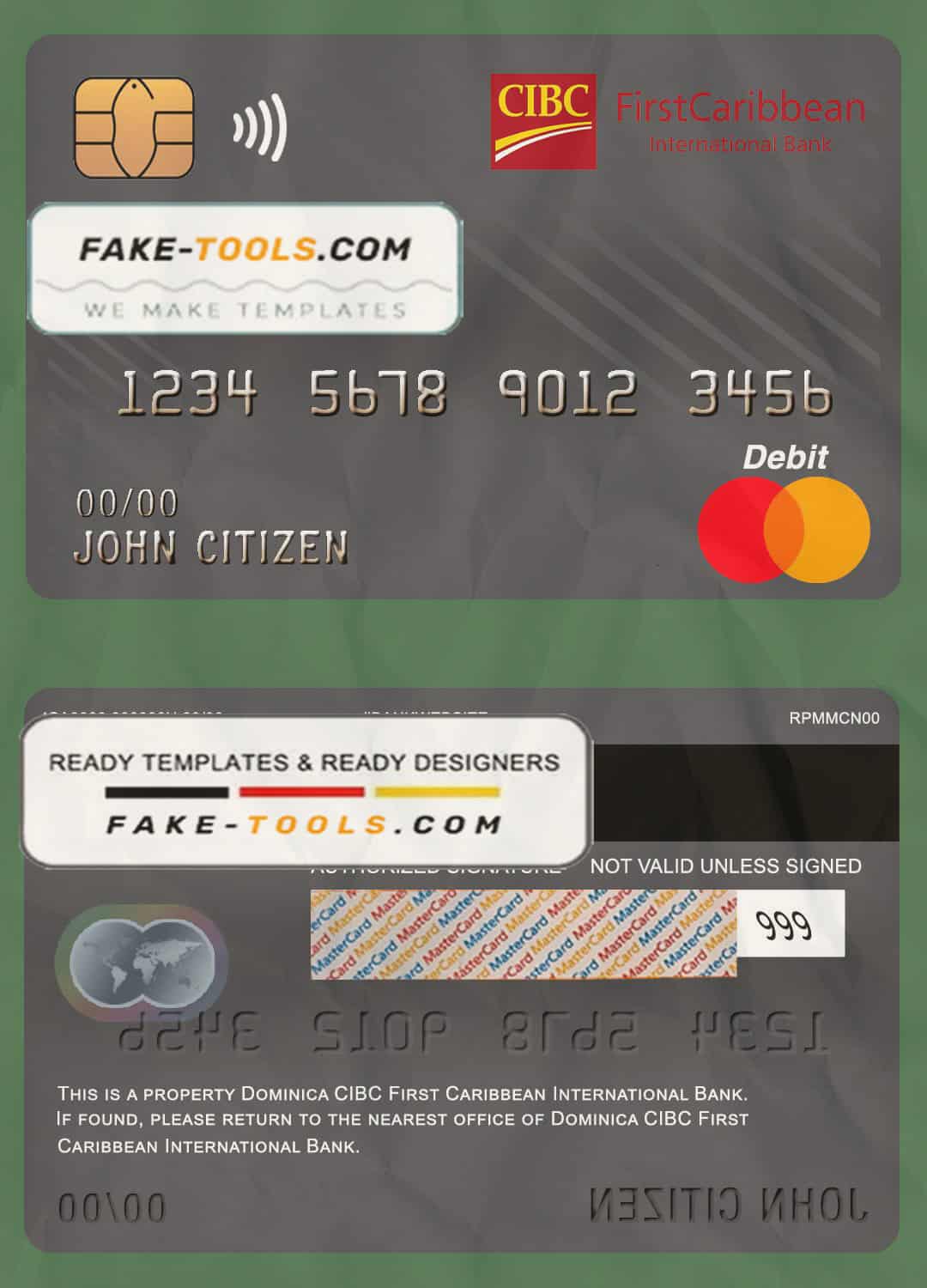 Dominica CIBC First Caribbean International bank mastercard debit card template in PSD format, fully editable