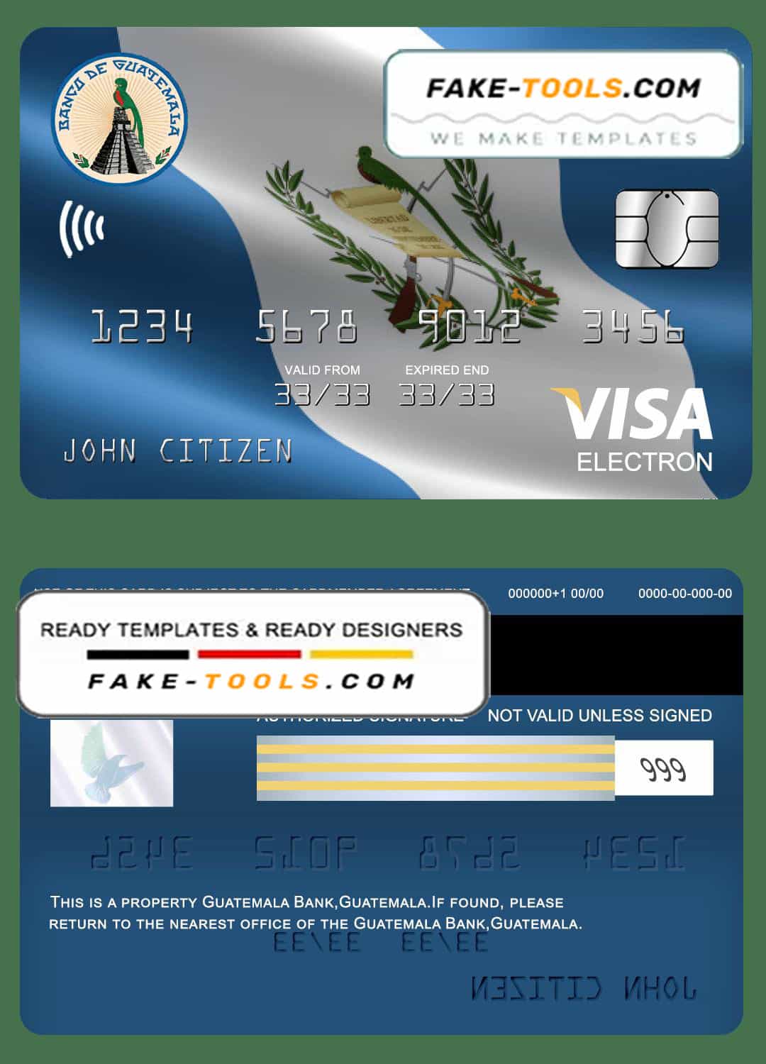 Guatemala Banco de Guatemala bank visa electron card template in PSD format, fully editable