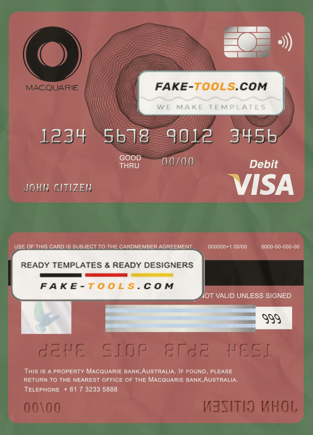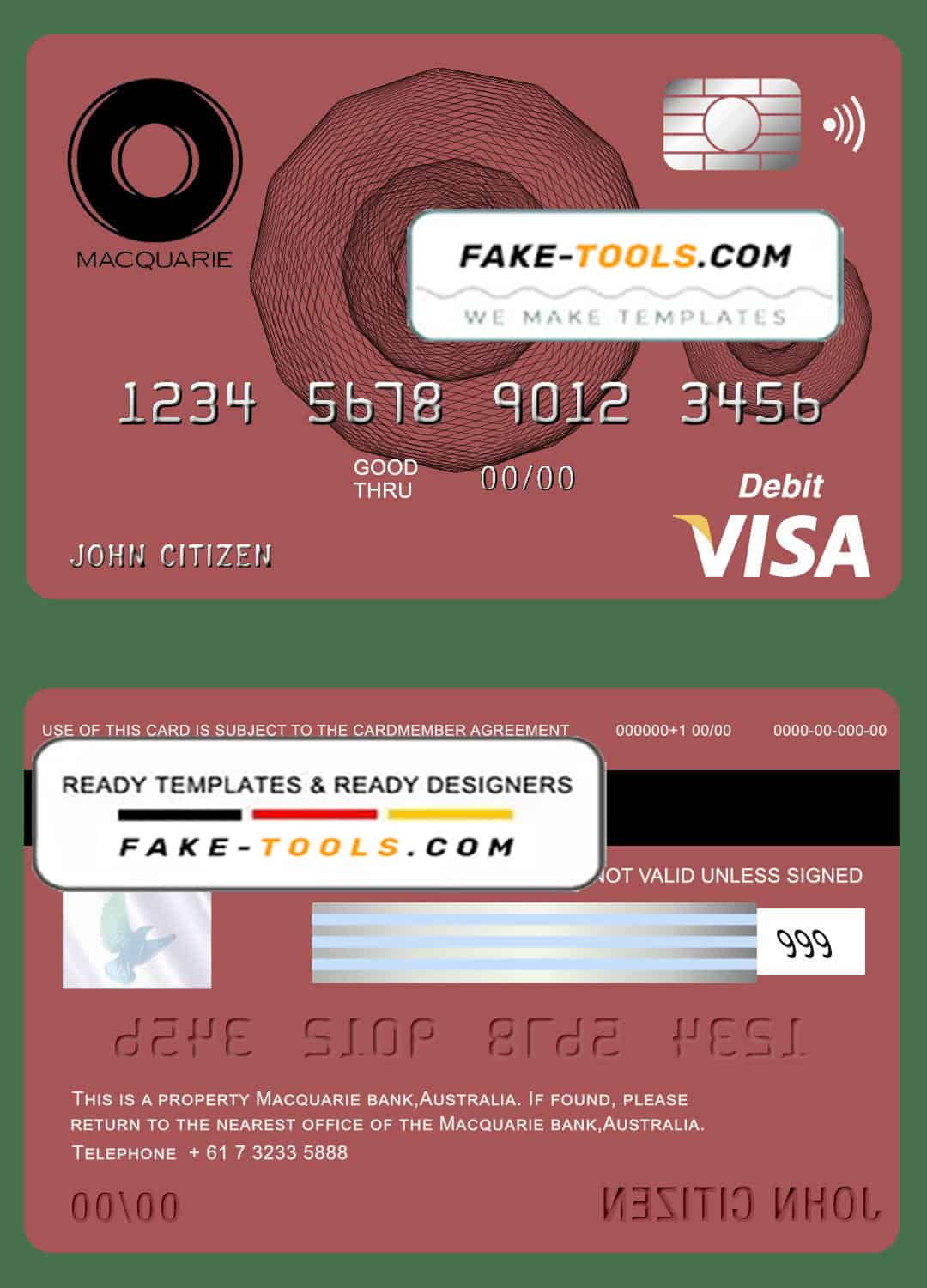 Australia Macquarie bank visa card debit card template in PSD format, fully editable