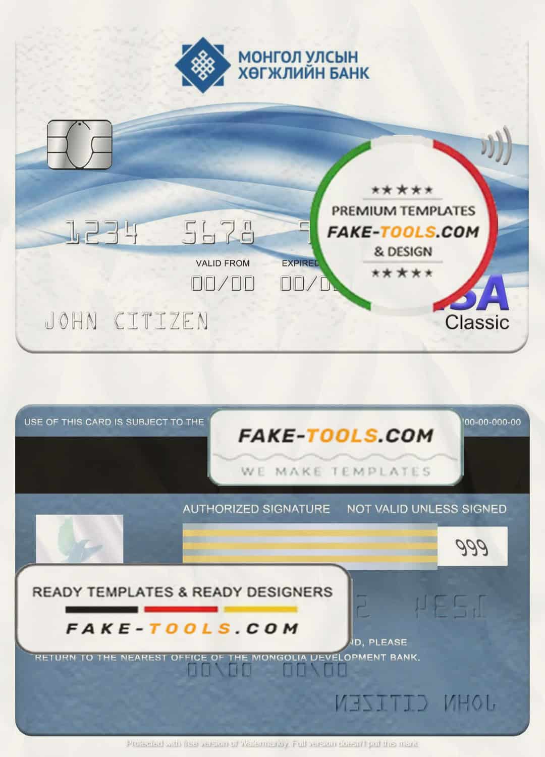 Mongolia Development bank visa classic card, fully editable template in PSD format