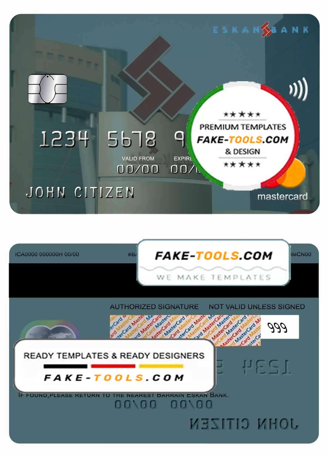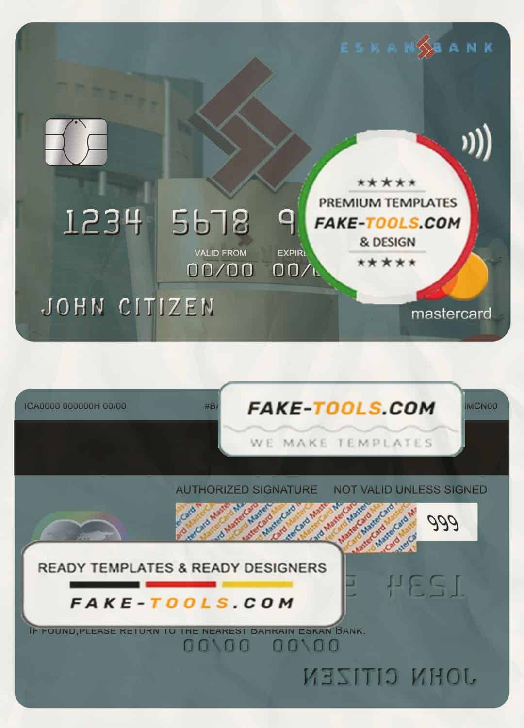 Bahrain Eskan bank mastercard template in PSD format, fully editable